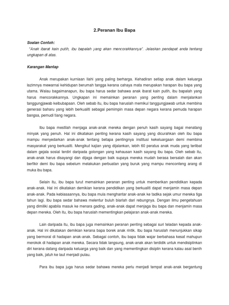 Contoh Karangan Peranan Ibu Bapa Pdf